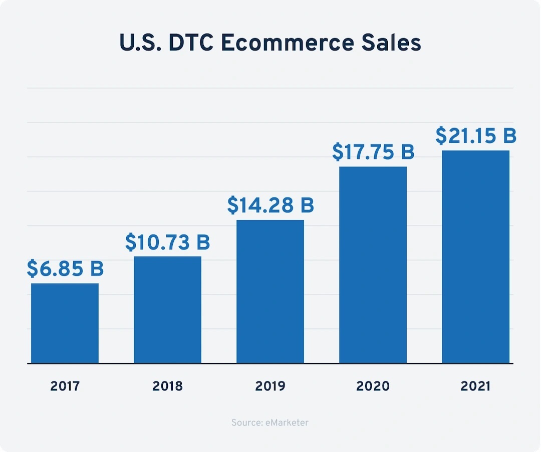 فروش آنلاین DTC در ایالات متحده 24.3 درصد در سال 2020 افزایش یافت و پیش بینی می شد که 19.2 درصد دیگر در سال 2021 افزایش یابد. و این فقط شامل درآمد از برندهای بومی دیجیتالی است که در دهه گذشته راه اندازی شده اند.