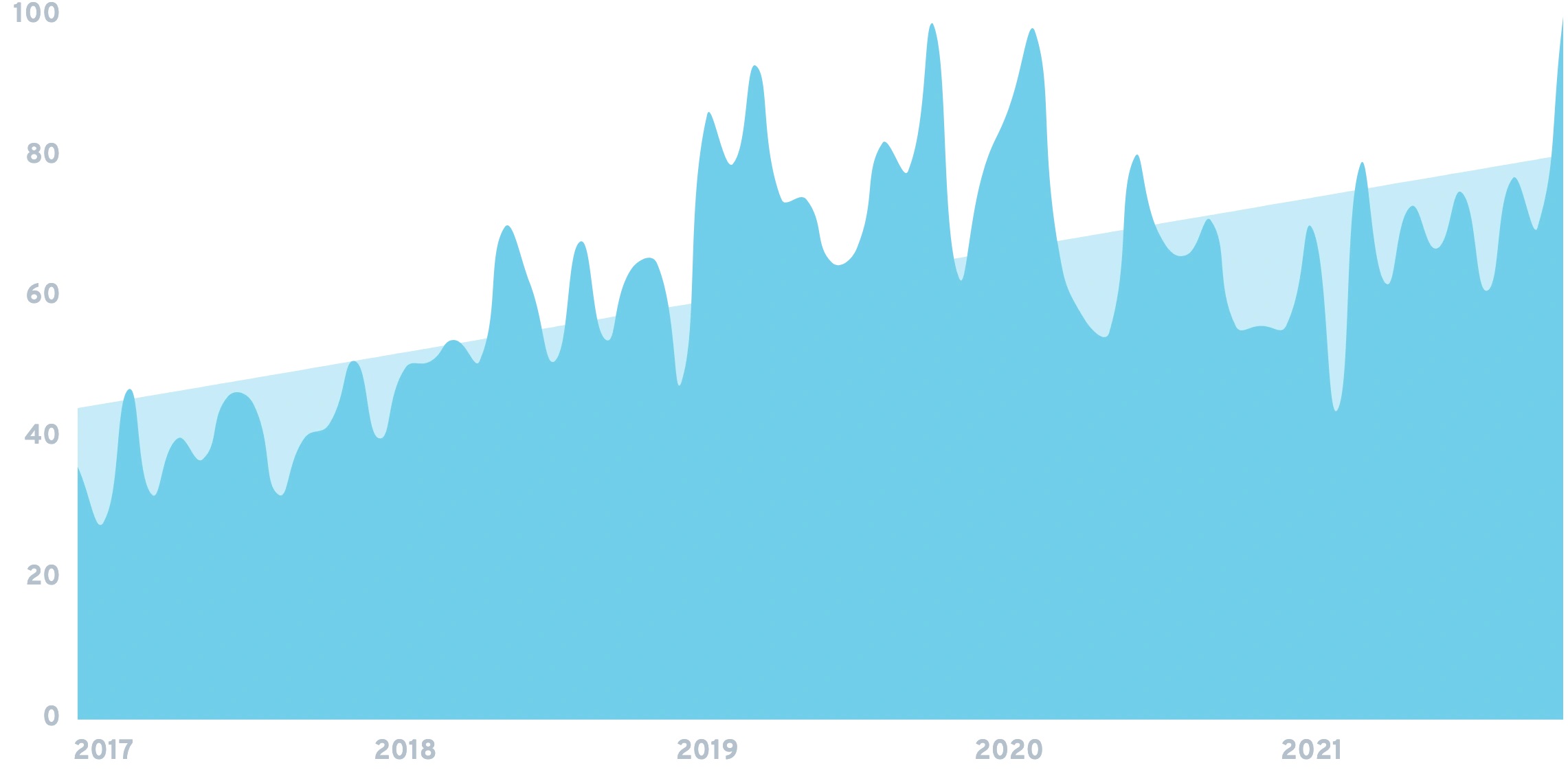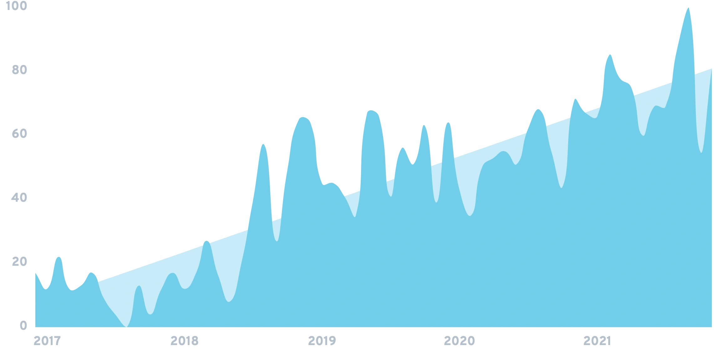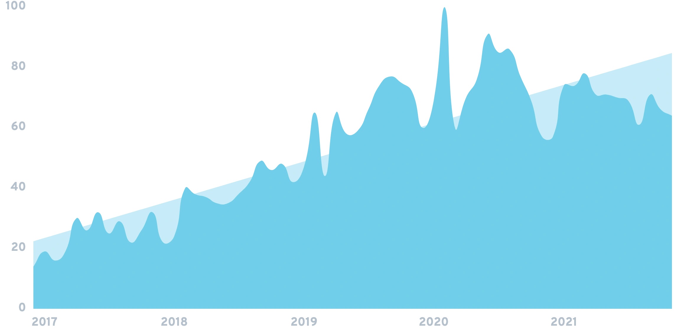 Search interest in "Drip" has steadily climbed 65% in the last five years