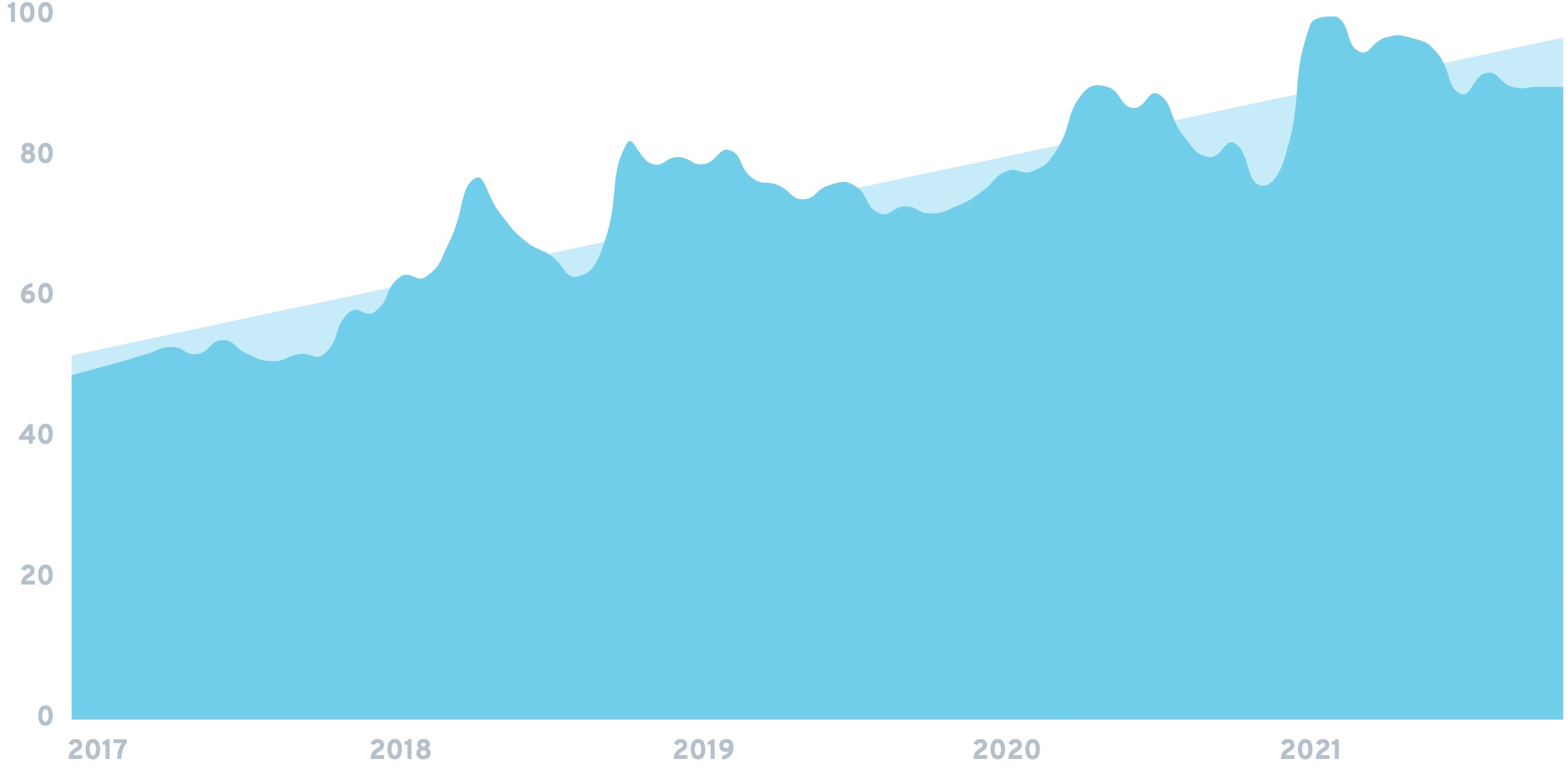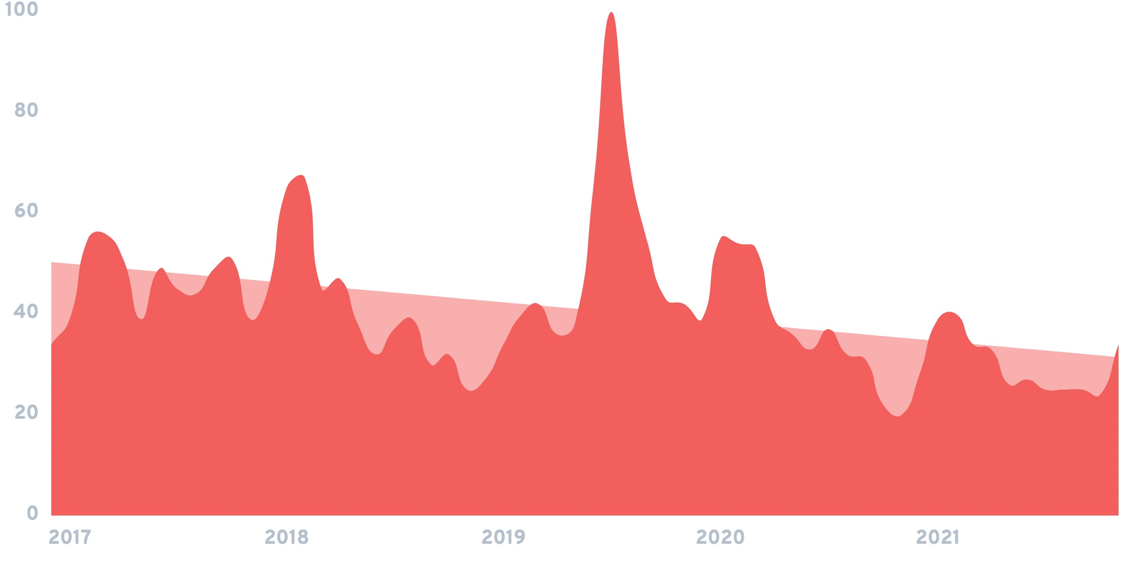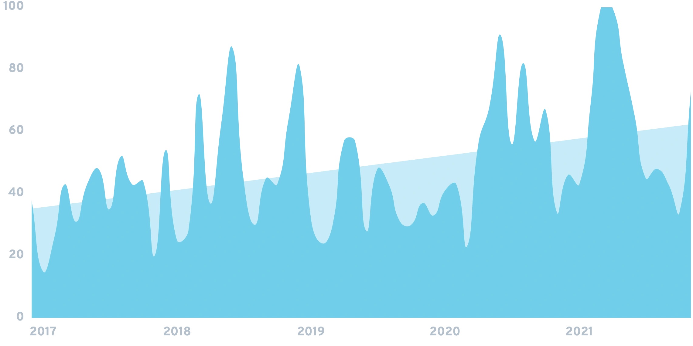 Search interest in "Drip" has steadily climbed 65% in the last five years