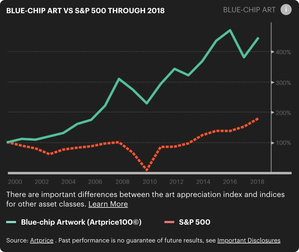 Masterworks به مردم این امکان را می دهد که روی «سهم» نقاشی های هنرمندانی مانند کلود مونه و اندی وارهول سرمایه گذاری کنند. به گفته این شرکت، این طبقه دارایی در 20 سال گذشته عملکرد بهتری از S&P 500 داشته است.