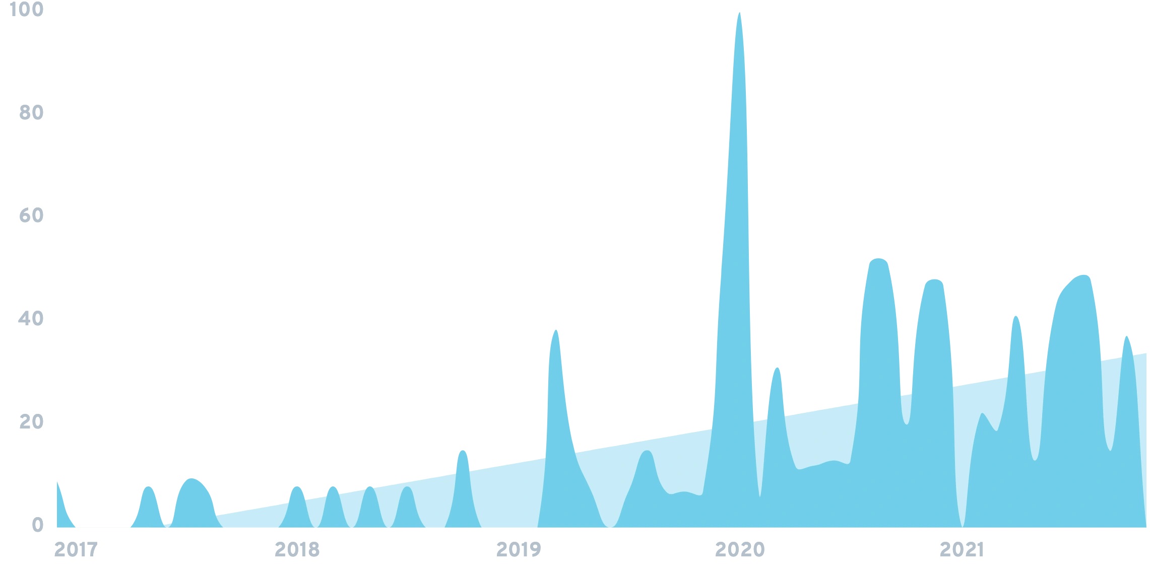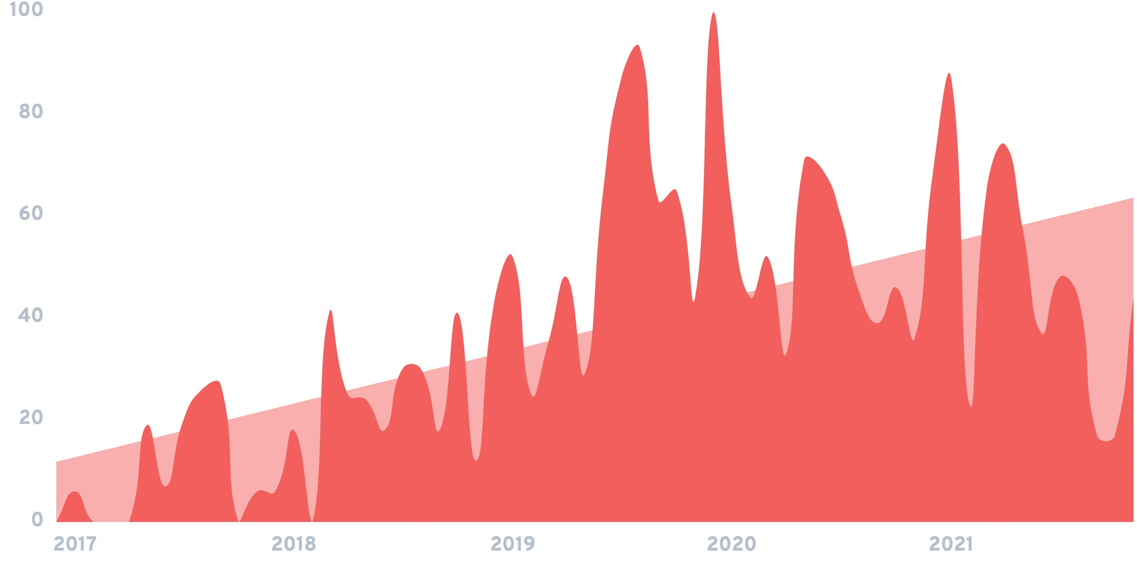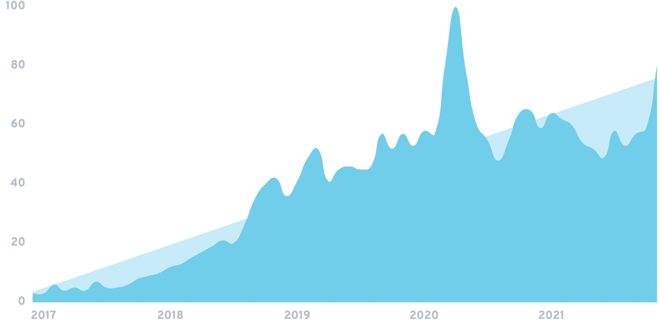 “Low-code” searches have increased by 376% since 2017. Interest exploded in the summer of 2018 and has remained high ever since