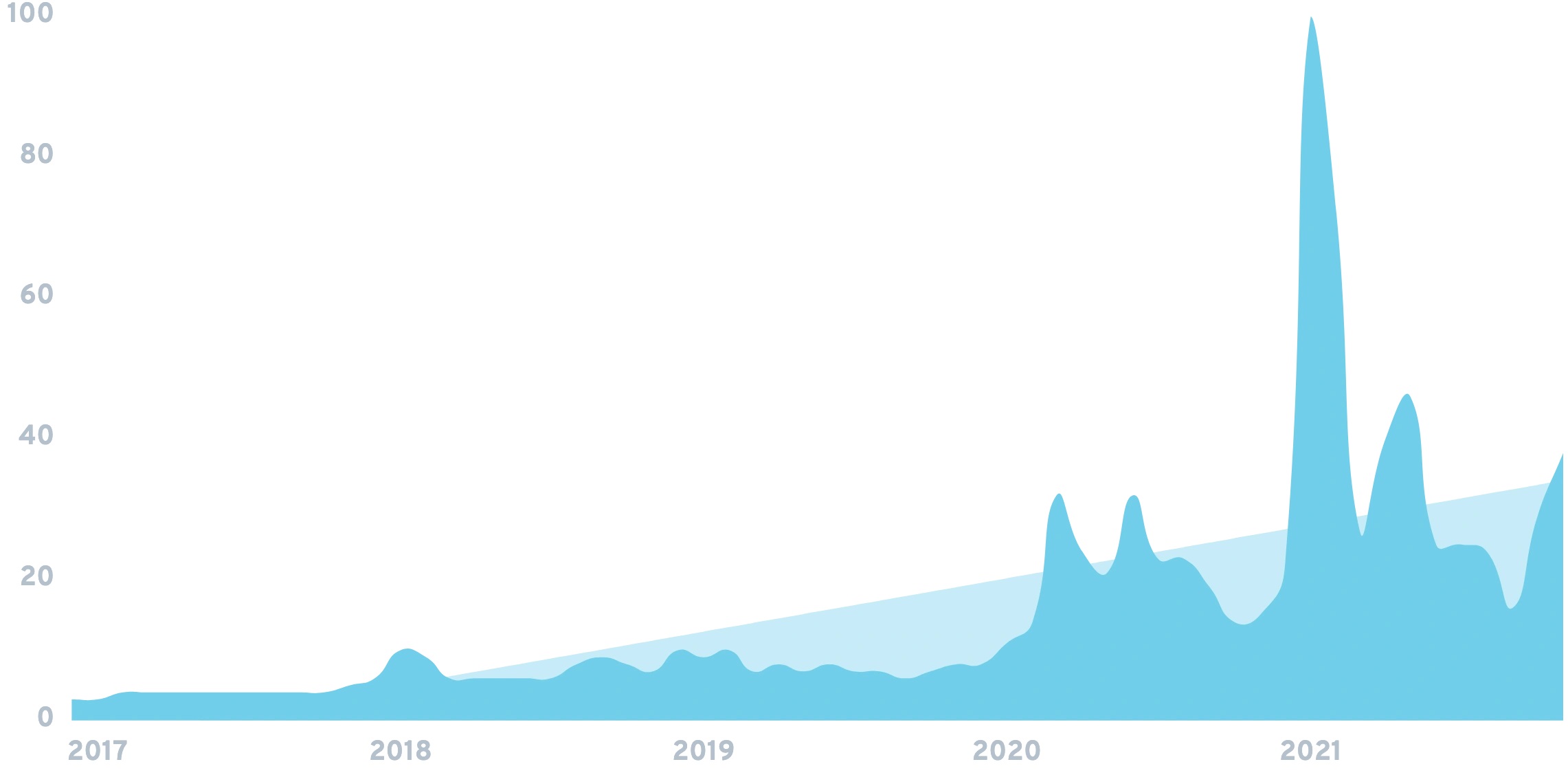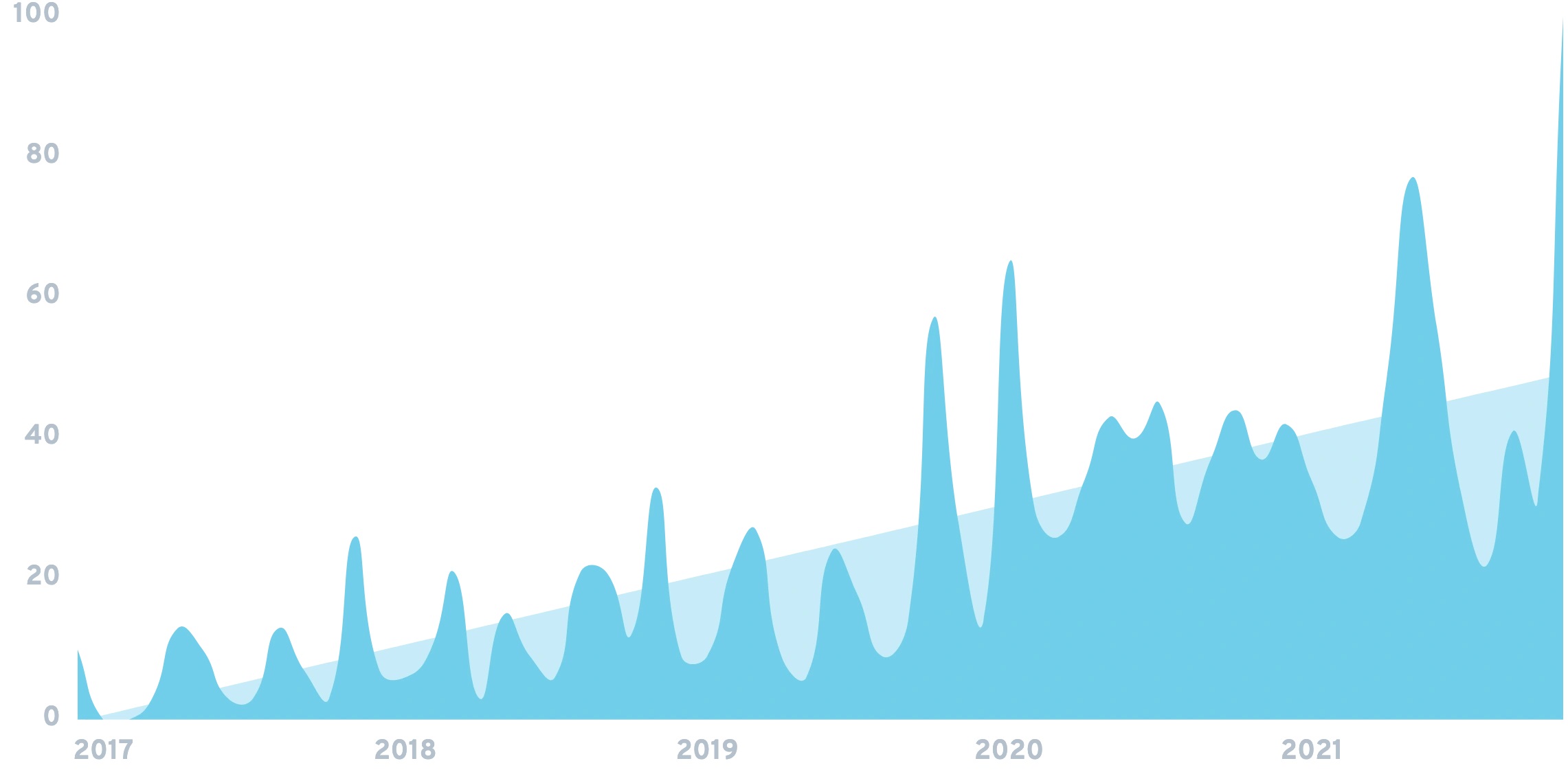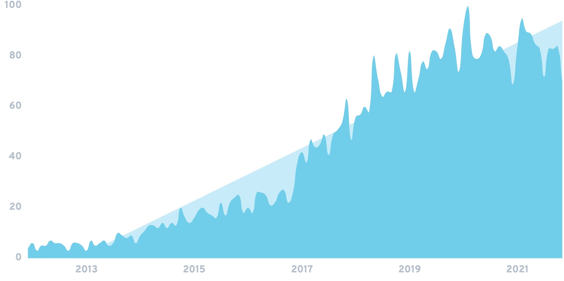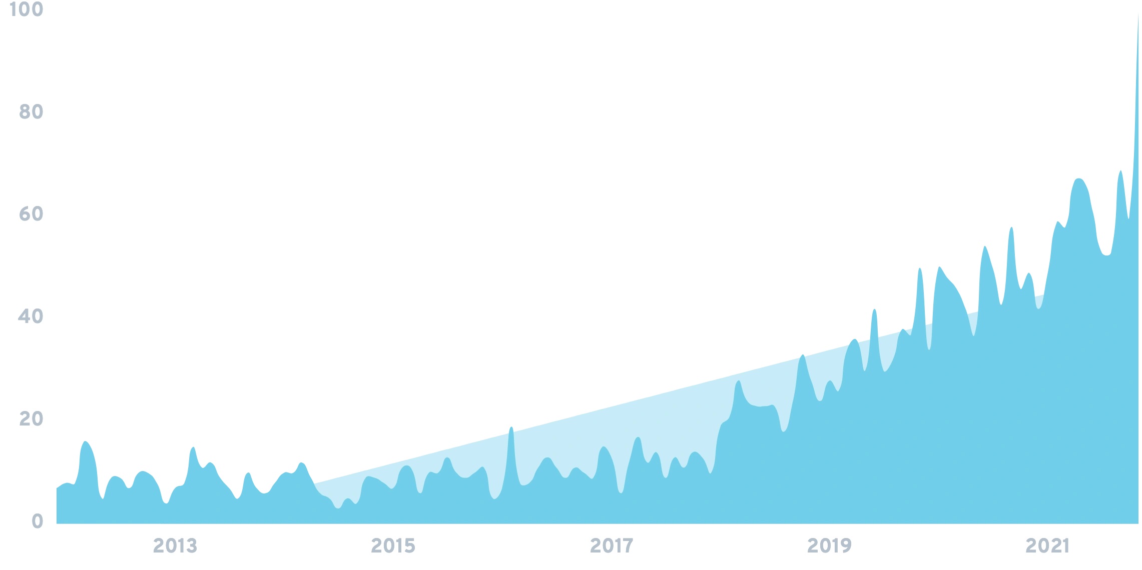 “Sustainable finance” searches are showing hockey stick growth (up 1,328% in 10 years)