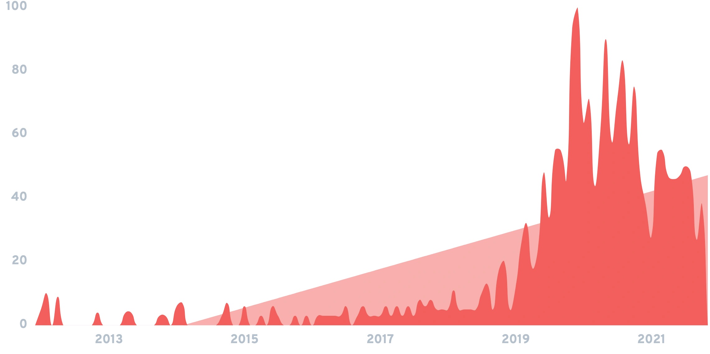 “Cloud kitchens” searches exploded in 2019. And are still well above pre-2019 levels
